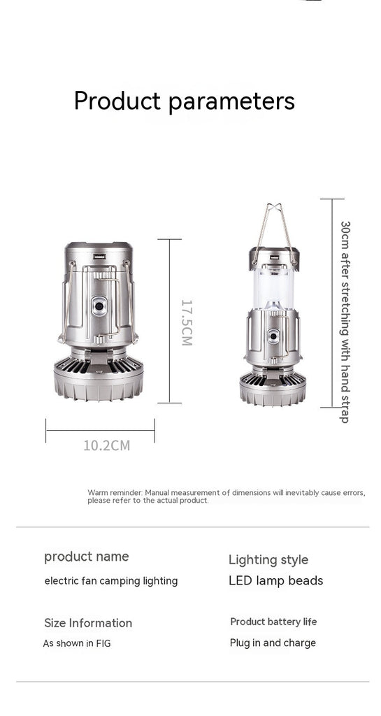 Product information: Color: gold, gray Model: 9299 Bulb: LED Product Size: 10CM * 17CM * 7.7CM Net Gross weight: 330g Packing Specification: [small 60 pack 55*57 * 47CM 26KG]] Color box size: 11*11 * 18.5CM Material: ABS engineering plastics Switch: Press switch/stretch portable lamp Battery: 1*18650 [1500 mA]/3 * no.7 battery (not included) Charging Method: solar charging/charger charging/fan dry battery backup compartment Waterproof grade: life waterproof Luminous flux: 99 lumens/199 lumens Indicator light: charging indicator light [non-power display light]] Features: solar rechargeable powerful fan/USB output support some mobile phone charging and small power USB night light Package includes: Fan barn lantern, charger, plus English color box, bubble film
